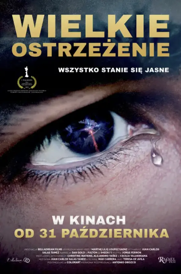 Wielkie ostrzeżenie to więcej niż film – to duchowe doświadczenie! Przeżycie, które zmienia spojrzenie na siebie i prowokuje do głębokiej refleksji. Obraz Juana Tameza opowiada o ludziach, którzy nagle i niespodziewanie doświadczyli łaski „oświecenia sumienia”, czyli stanu, gdy w jednej chwili zobaczyli wszystkie popełnione w życiu grzechy i ich skutki oraz poznali, w jakim miejscu drogi do zbawienia czy też zatracenia znajdują się obecnie. To bolesne, a jednocześnie oczyszczające wydarzenie, pokazujące prawdę o życiu w pełnym świetle, radykalnie odmieniło bohaterów filmu. Jednak ich nieprawdopodobna historia to zaledwie zapowiedź…